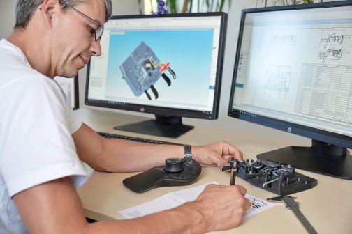 Diese Kreativität und die Ideen des Konstrukteurs führen zu einem ersten Entwurf, der während des Entwicklungsprozesses mithilfe unseres 3D-CAD-Systems immer weiter ausgearbeitet wird. Daraus entstehen Einzelteil-Zeichnungen, Baugruppenzeichnungen und Stücklisten, die alle für die Fertigung des Produkts notwendigen Material-, Bearbeitungs-, Maß- und Toleranz-Angaben enthalten. Dabei sind neben Rechen- und Prüfverfahren oft auch ungewöhnliche, intuitive oder grafische Vorgehensweisen notwendig.
